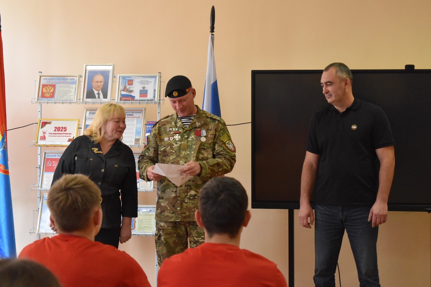 Алексей стал участником СВО в 2022 году. Служил гранатомётчиком в мотострелковой дивизии, потом был назначен командиром отделения. За успехи на службе награждён медалью «За заслуги перед Отечеством» II степени. Александр стал участником спецоперации тоже в 2022 году, был штурмовиком. Бойцы рассказали ребятам о службе, а молодые люди задали военным интересующие их вопросы.