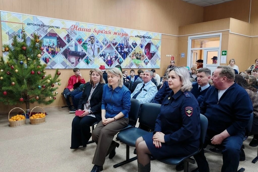 С тёплыми поздравлениями к ребятам обратилась начальник отделения по делам несовершеннолетних, майор полиции Светлана Кузнецова. Она пожелала детям благополучия, успехов и счастливого будущего. Правоохранители подарили ребятам один из ярких символов праздника — корзины с мандаринами.