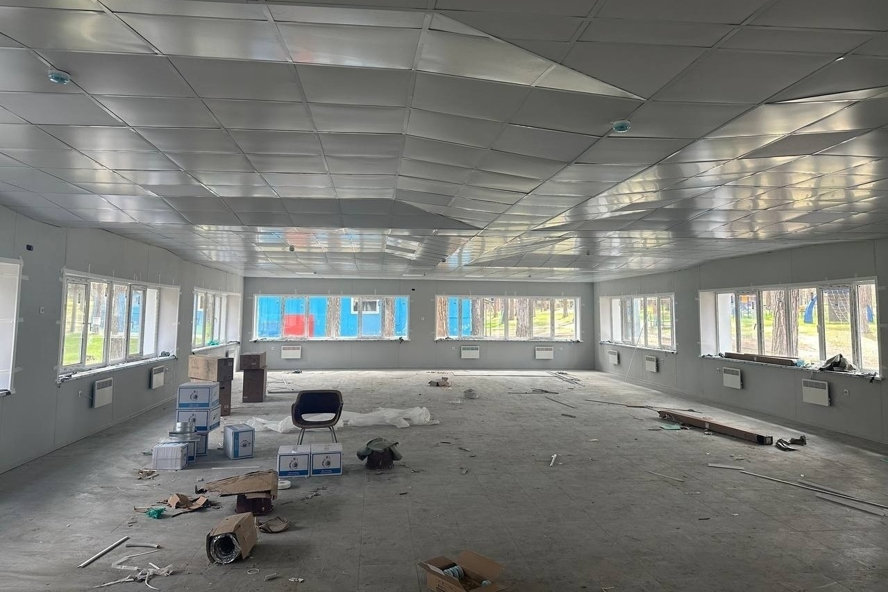 — Демонтажные работы завершены. В настоящее время ведутся внутренние отделочные работы. Рабочие приступили к отделке фасада металлокасетами. Также в полном объёме выполнены кровельные работы, — отметили в ведомстве.